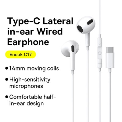 Home AUDIOS, AIRPODS Baseus Earphones Encok C17 with Type-C Plug NGCR010002-White