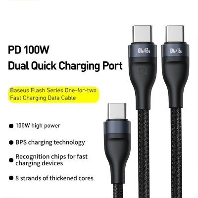 Home Type C Cables Baseus Flash Series One-for-two Fast Charging Data Cable Type-C to C+C 100W 1.5m