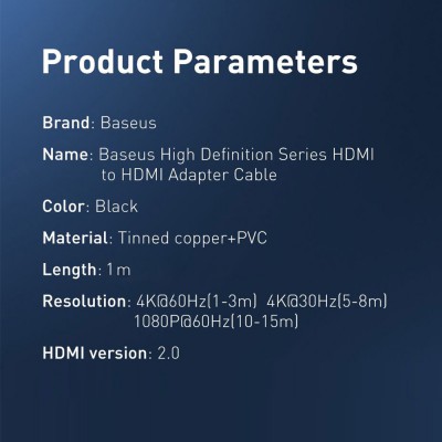 1 x BASEUS HDMI 2.0 Cable 4KHDMI Male to 4KHDMI Male Adapter Cable (1m)
