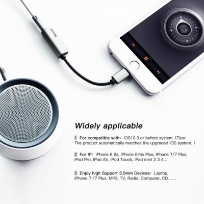 Brand: Baseus Technique: sandblasting + oxidation + laser carving Power: 5V2A Material: aluminum alloy + TPE Lightning to Lightning-audio, Lightning-charging,
