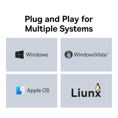 – Plug And Play For Multiple Operating Systems, Windows, Vista, Apple OS, Linux