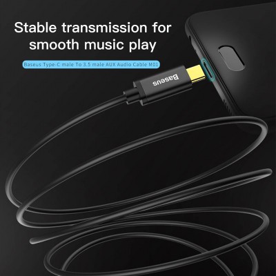 Baseus Stereo Audio AUX Cable 3.5MM Mini Jack – Type-C for Smartphone 120cm (CAM01-01)-Black