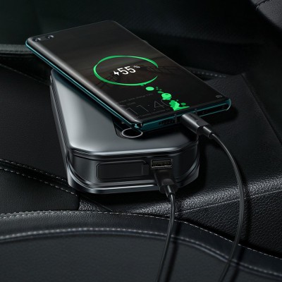 The built-in display informs you about battery level in the jump starter