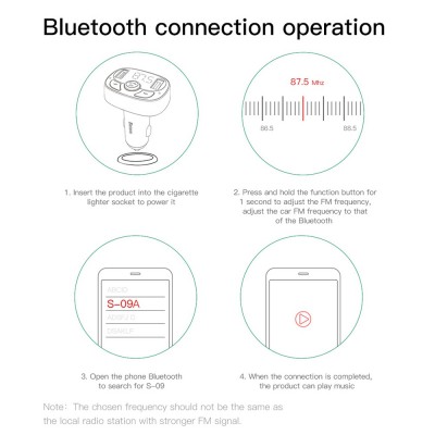 Baseus T Typed S-09A Bluetooth MP3 Car Charger (Standard edition)-Black
