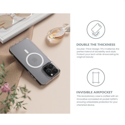 Bounce Impact Clear Shockproof Magnetic Cover Case for iPhone 15 Plus